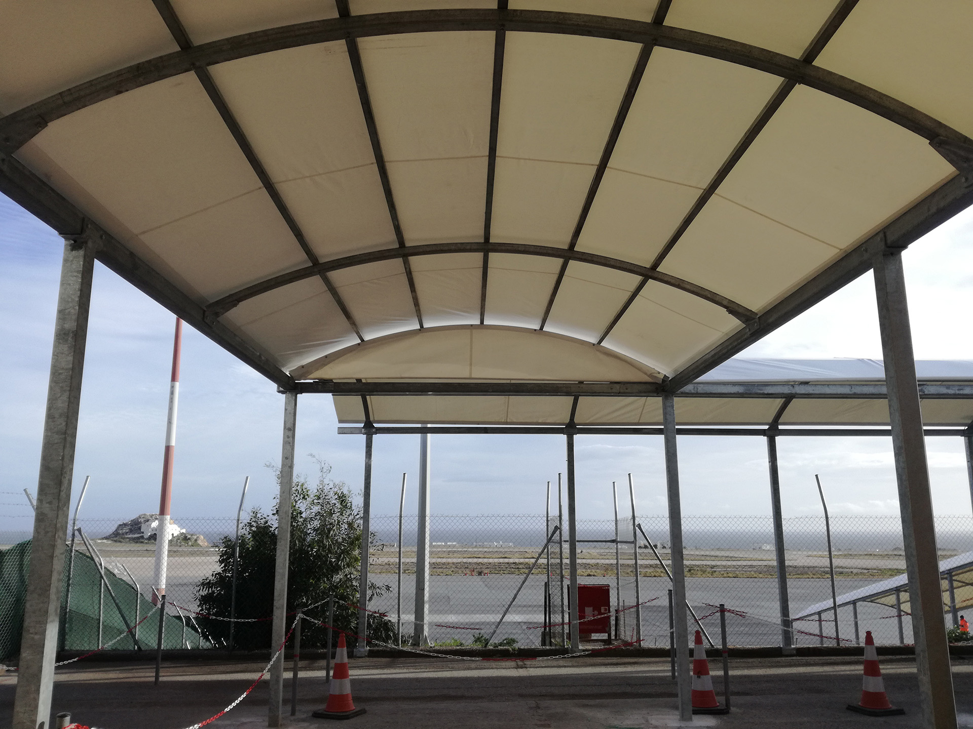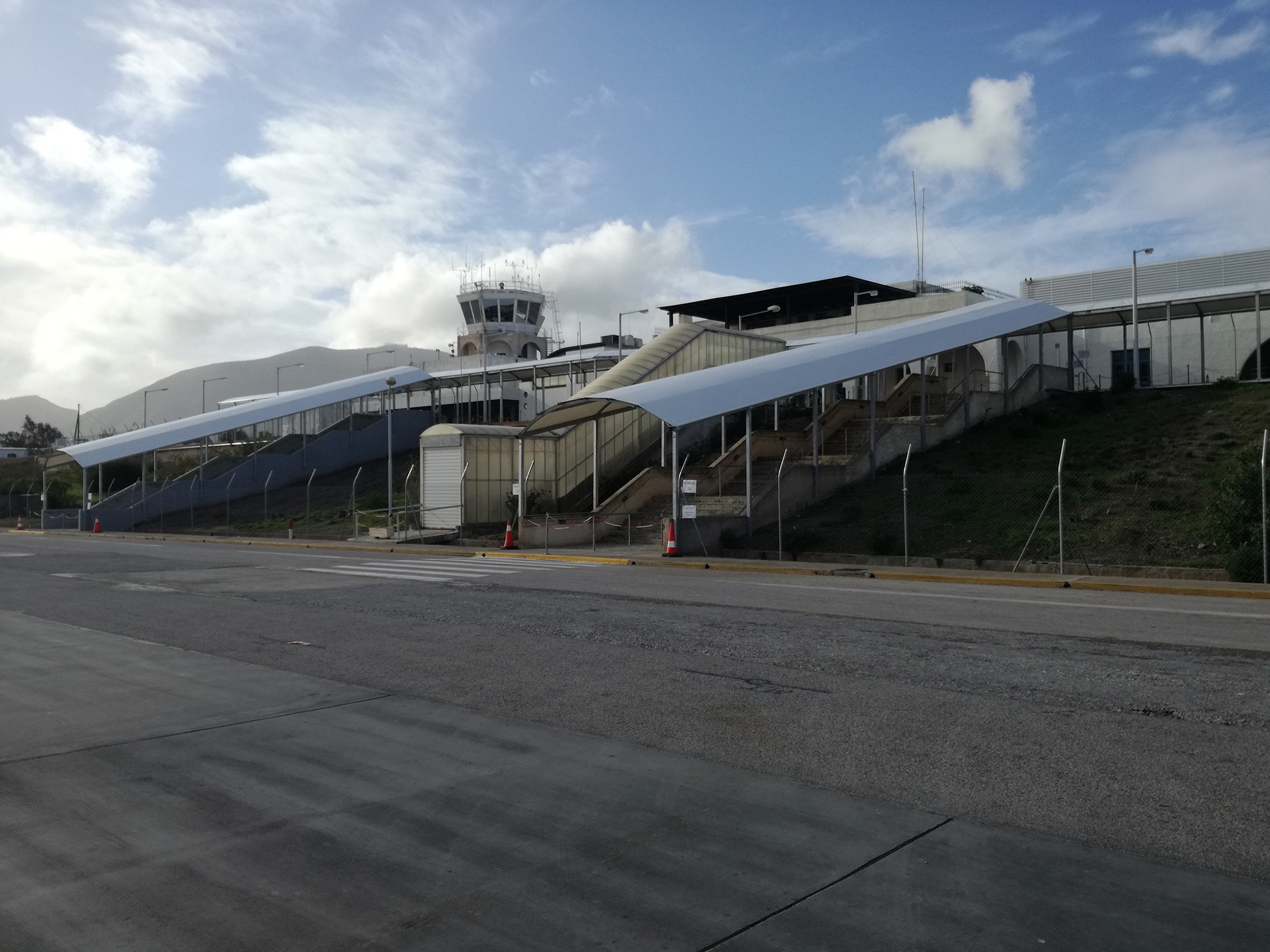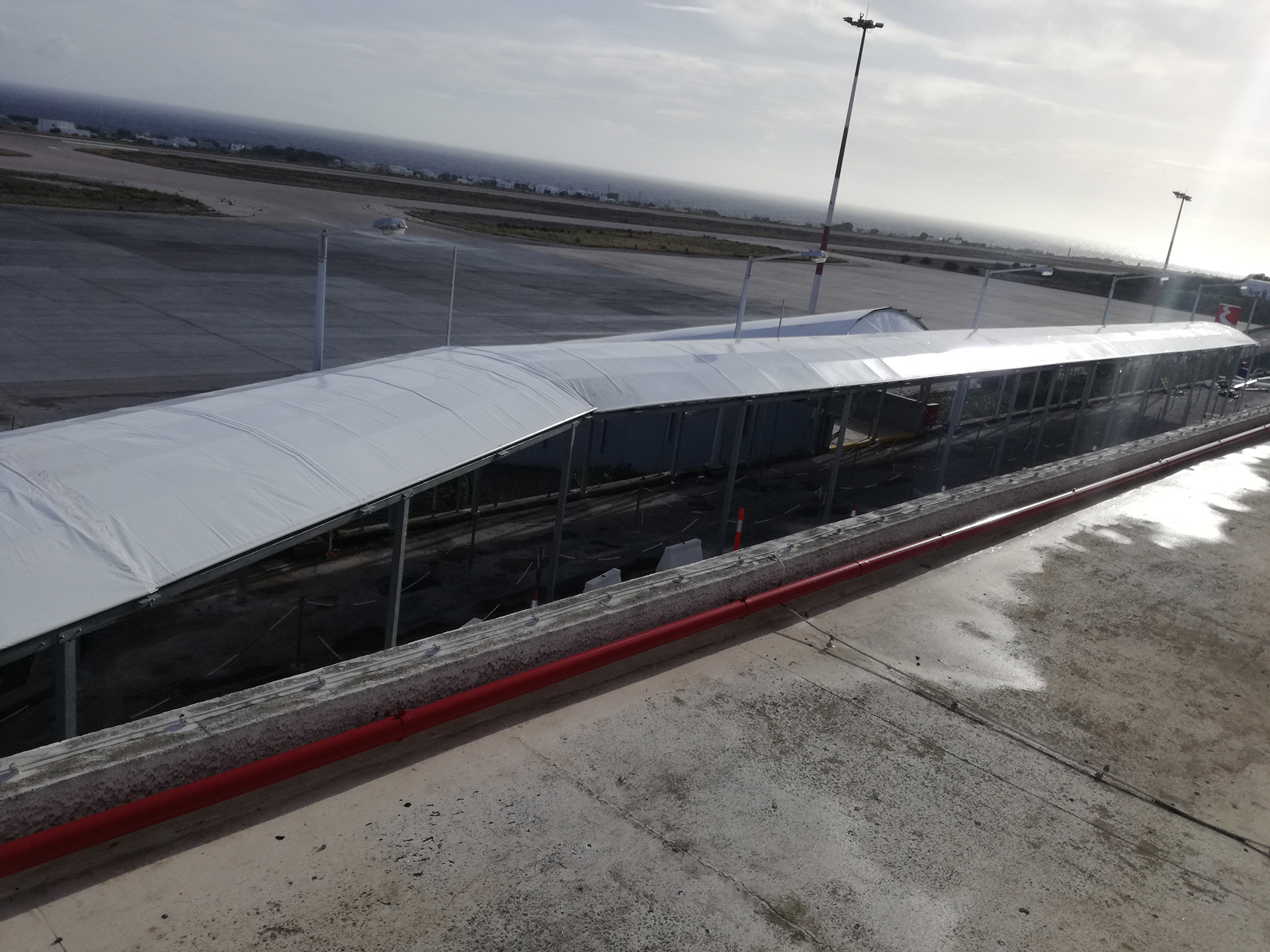 Μεταλλικό υπόστεγο με τέντα στον Αερολιμένα Σαντορίνης