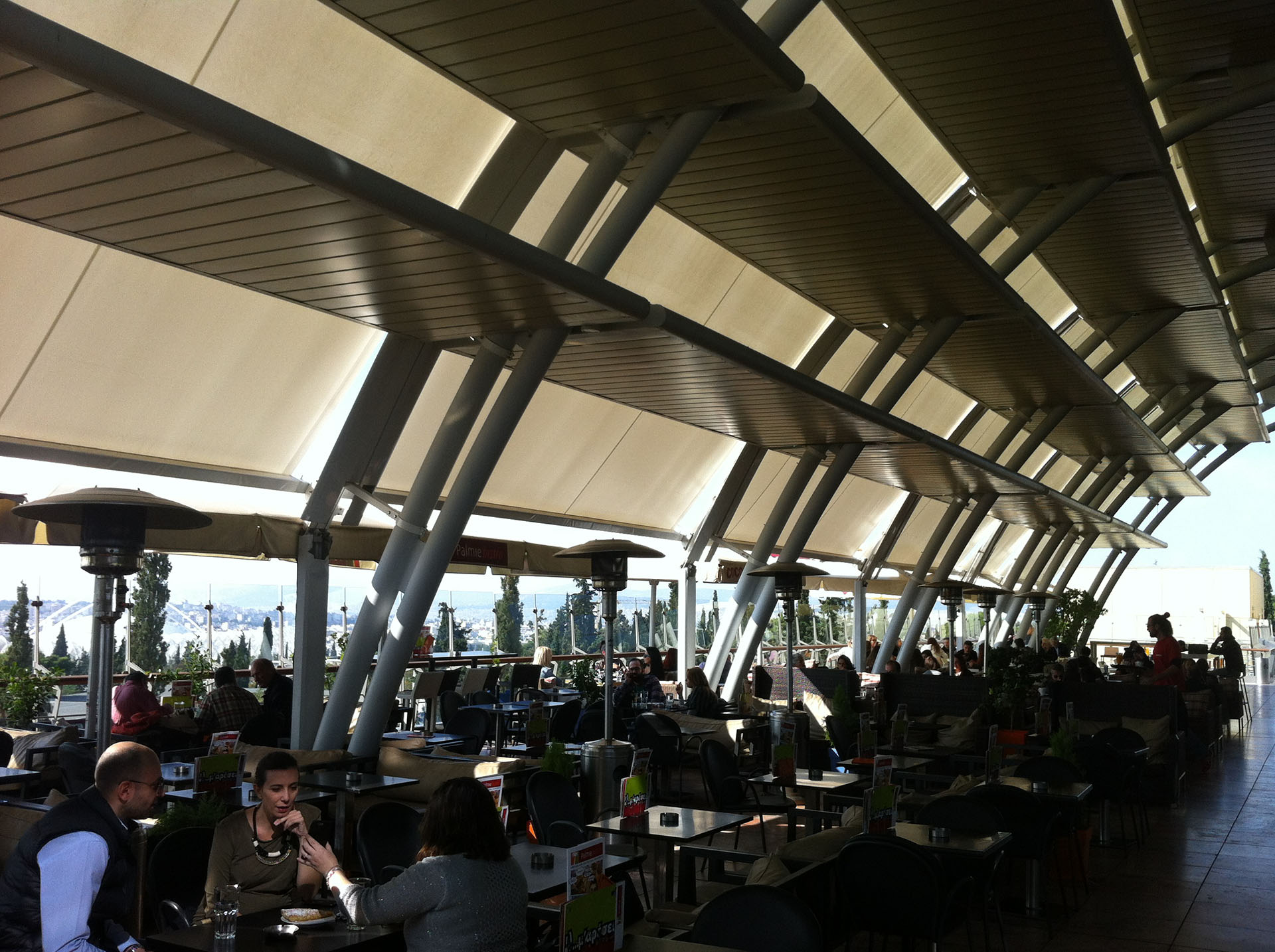 Κάλυψη με τέντα ηλεκτροκίνητη συνολικής επιφάνειας 900τ.μ. στο χώρο με τις καφετέριες του MALL.