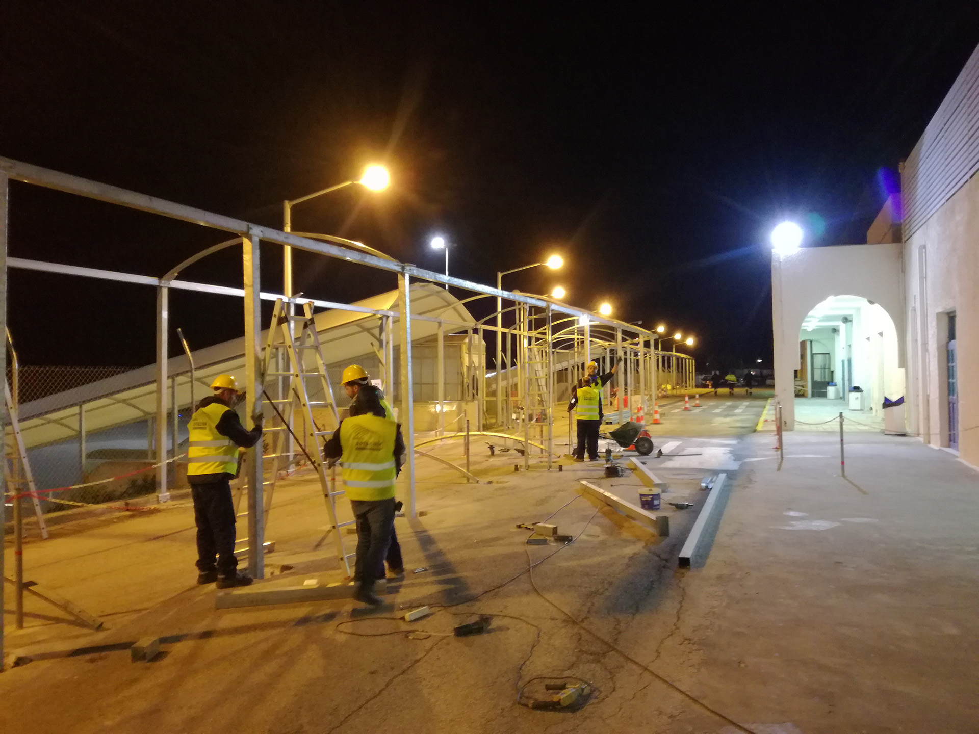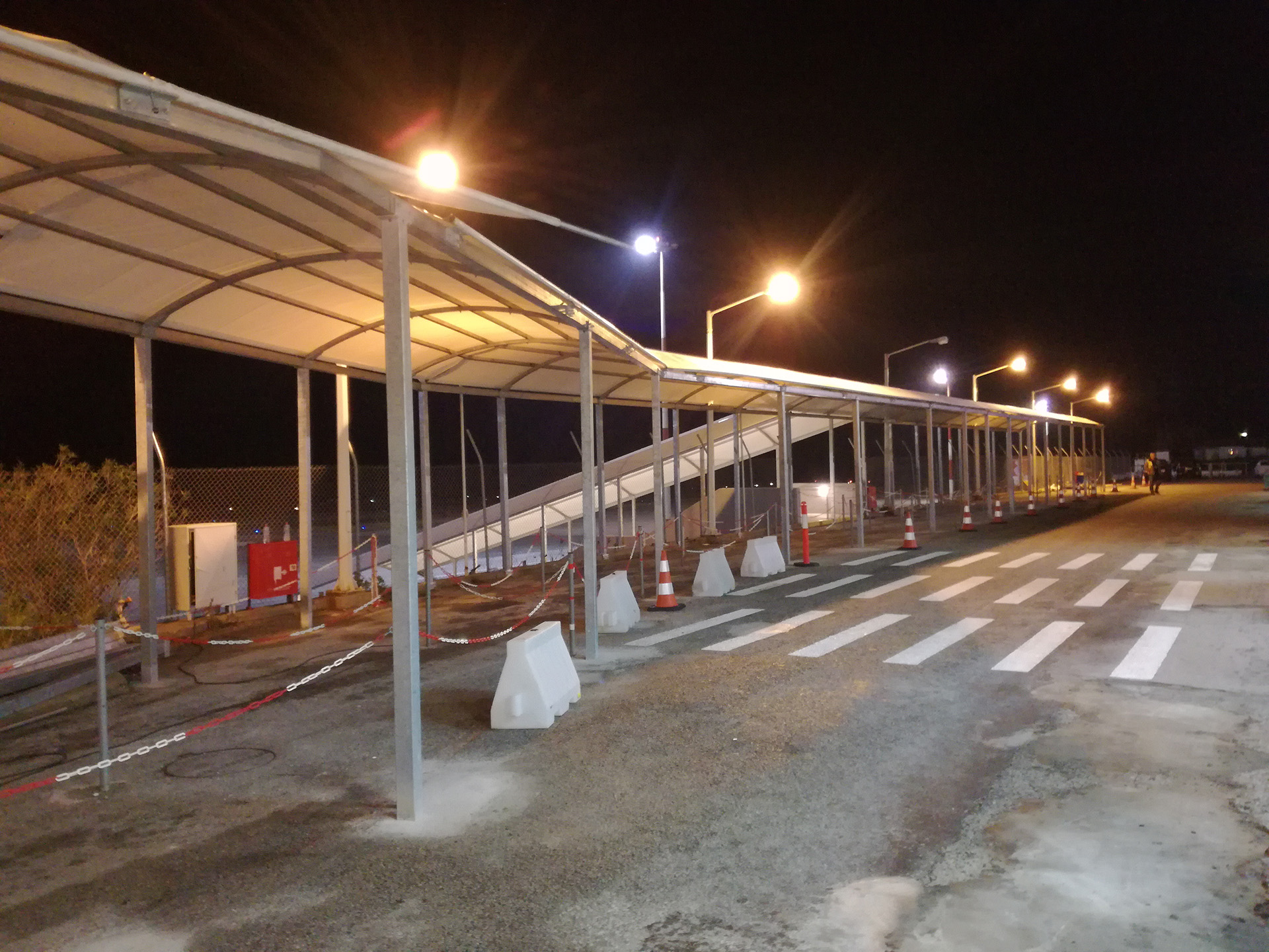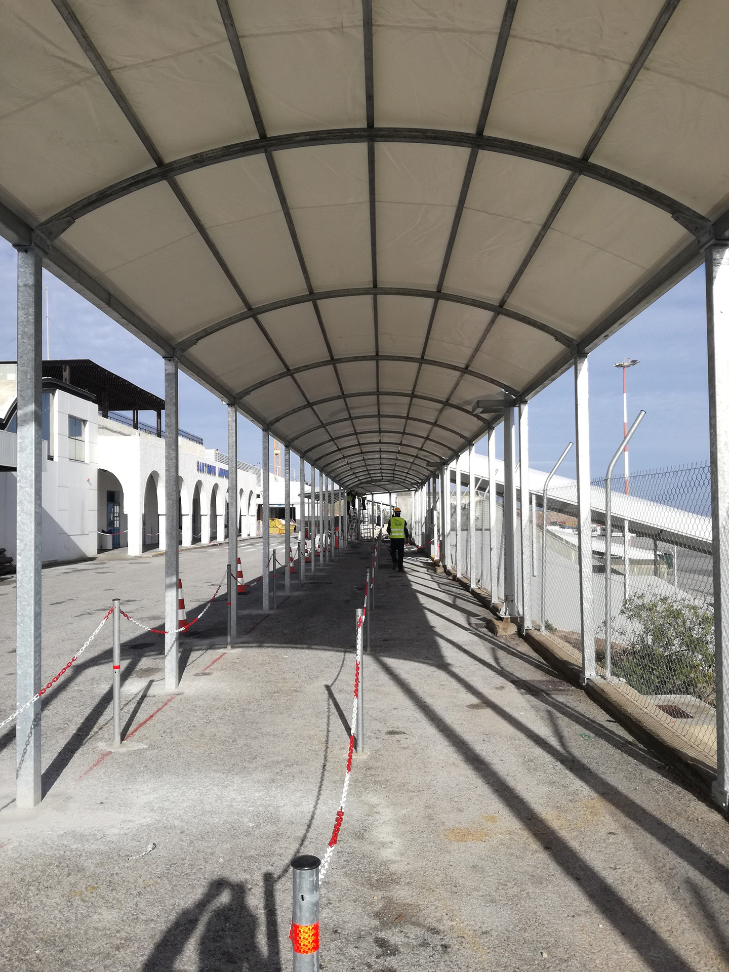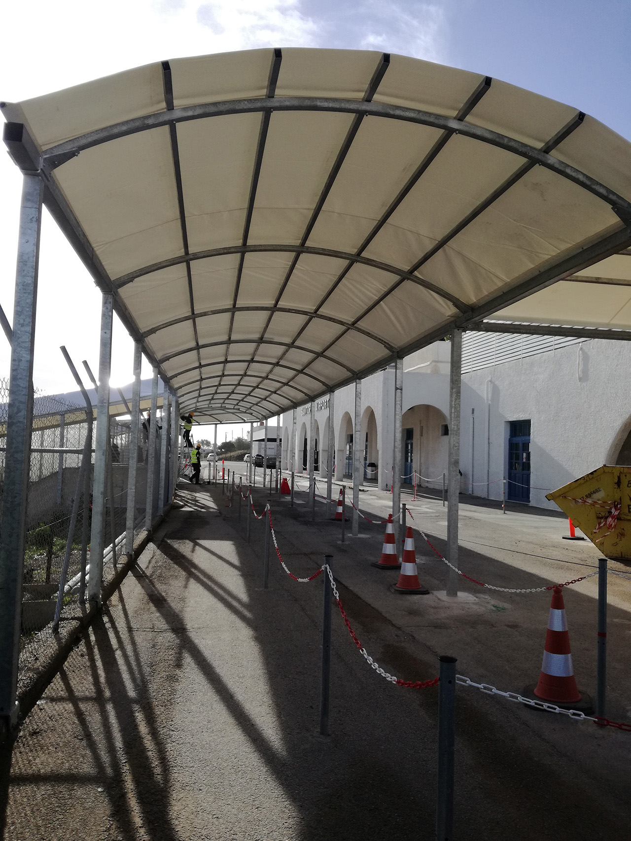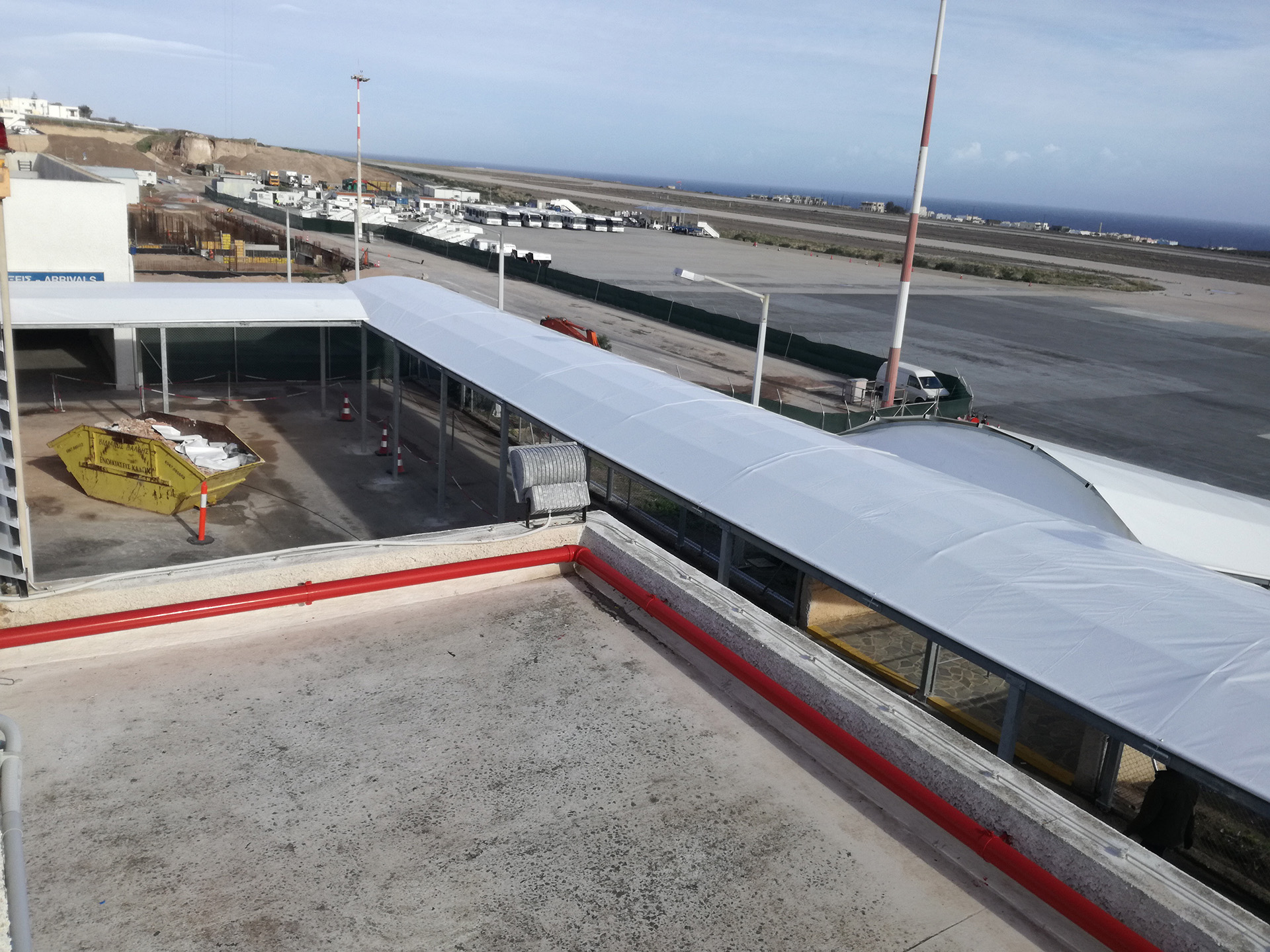 Μεταλλικό υπόστεγο με τέντα στον Αερολιμένα Σαντορίνης