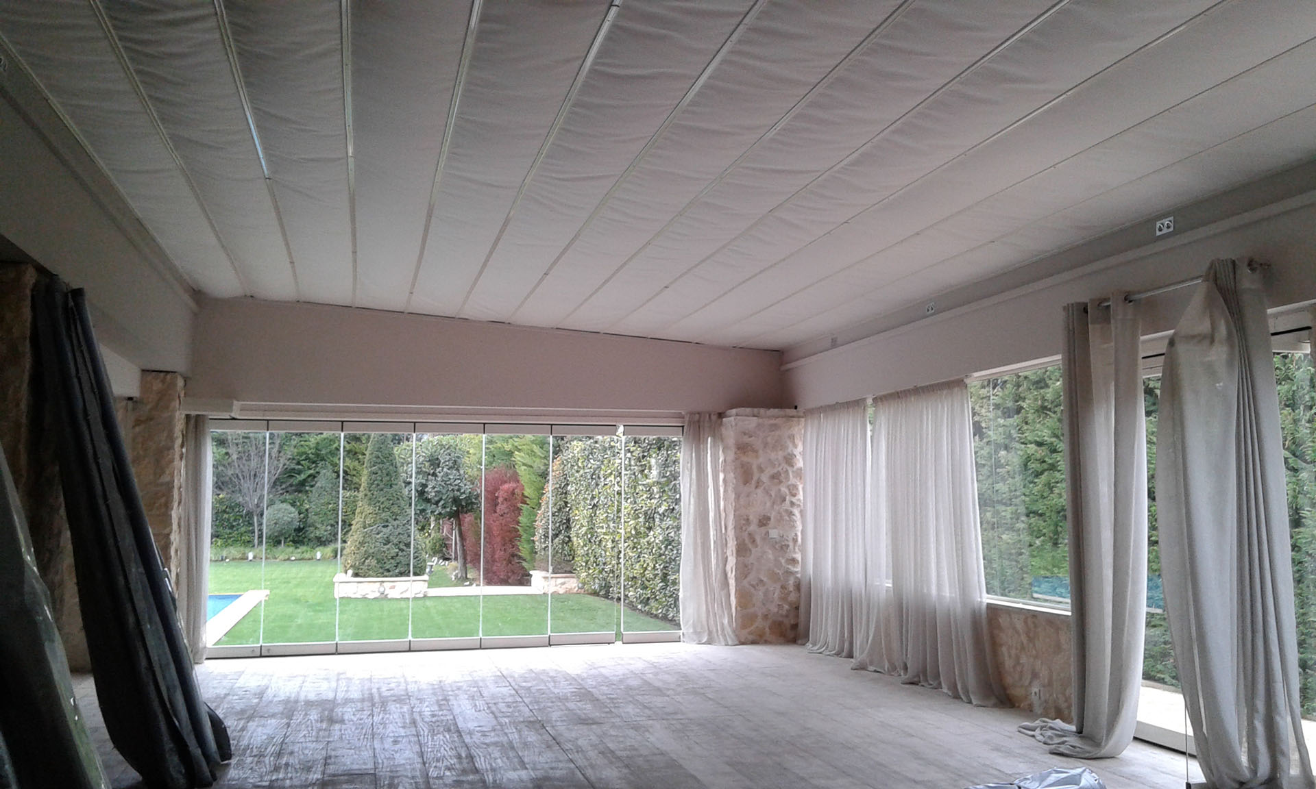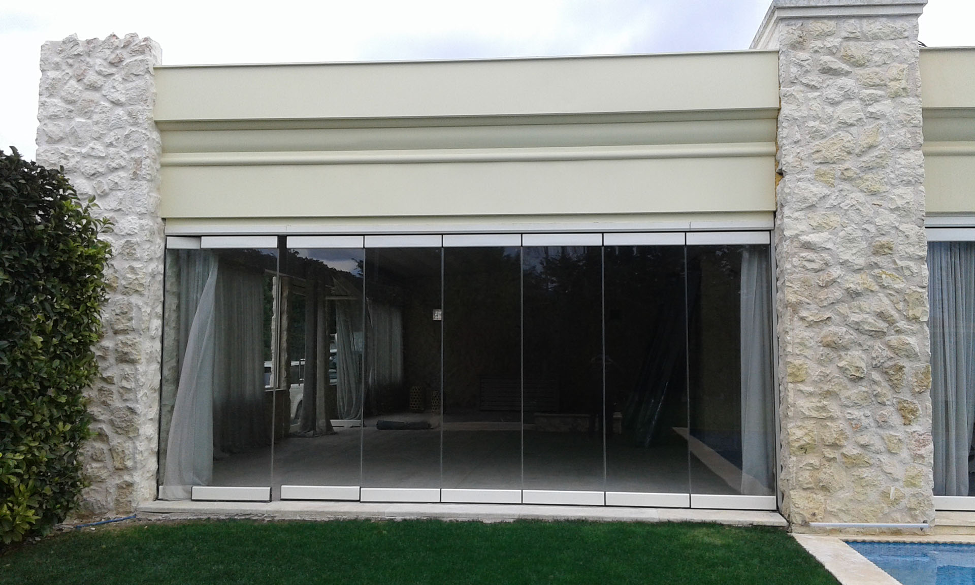 Η οροφή είναι ανοιγόμενη και διαθέτει περιμετρικό υαλοστάσιο με σταθερά και κινητά τζάμια.