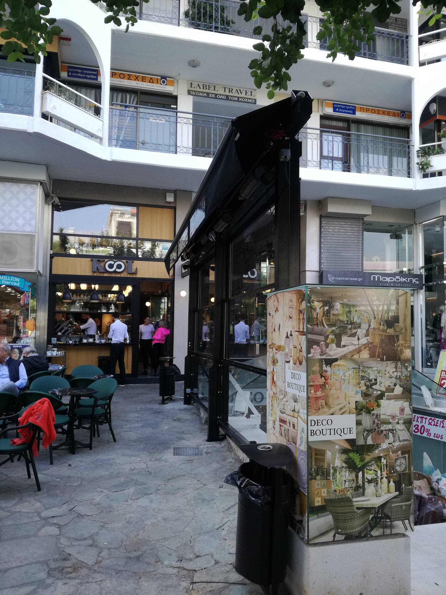 Ανεμοφράκτες και τέντα με φωτιζόμενη γλώσσα - επιγραφή στην καφετέρια Kool